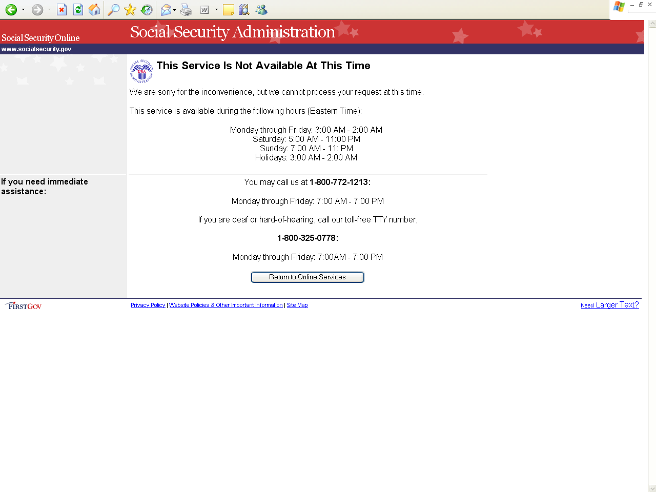 MSG028 This Service Is Not Available At This Time