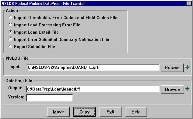 You can also insert a Version name by filling in the Version box. This can help if you have more than one loan detail file. However, the file will have to be named “loandtlVersionname.ff” and it will be placed in the directory you specified in the Directory options. If you did not specify a directory, DataPrep will automatically place it in the C:\DataPrep-GA\Current\ directory.