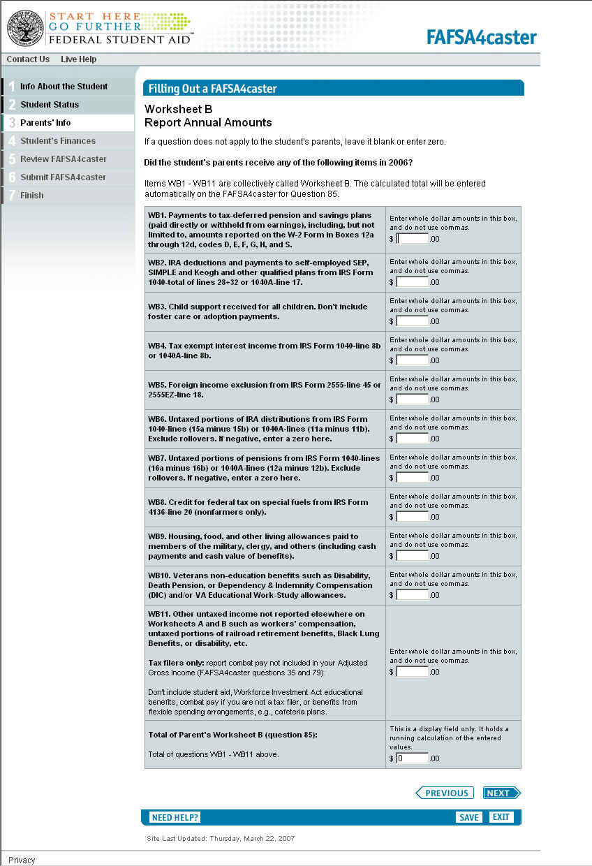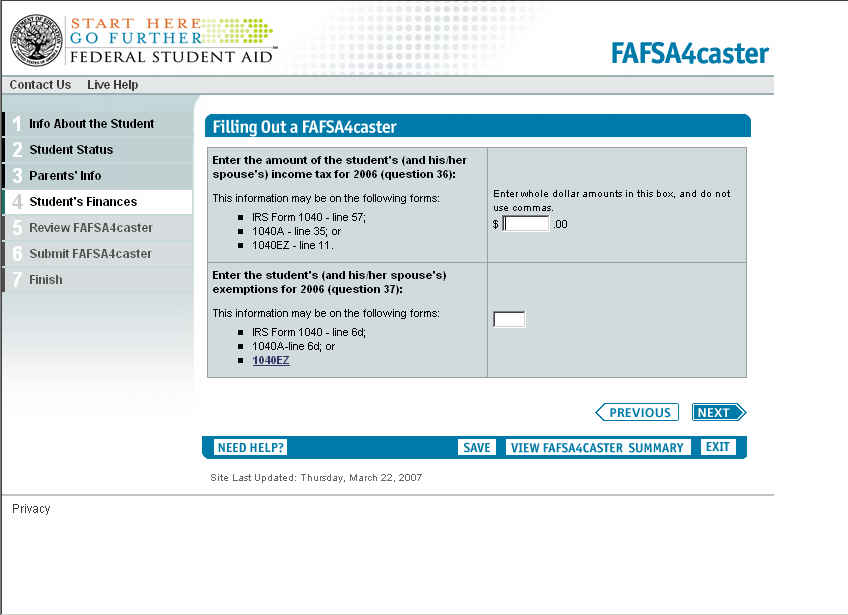FAFSA4castser Screen Shots