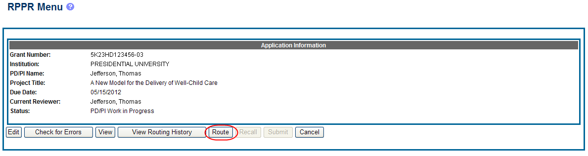 Figure 1: RPPR Navigation Links from Cover Page 6