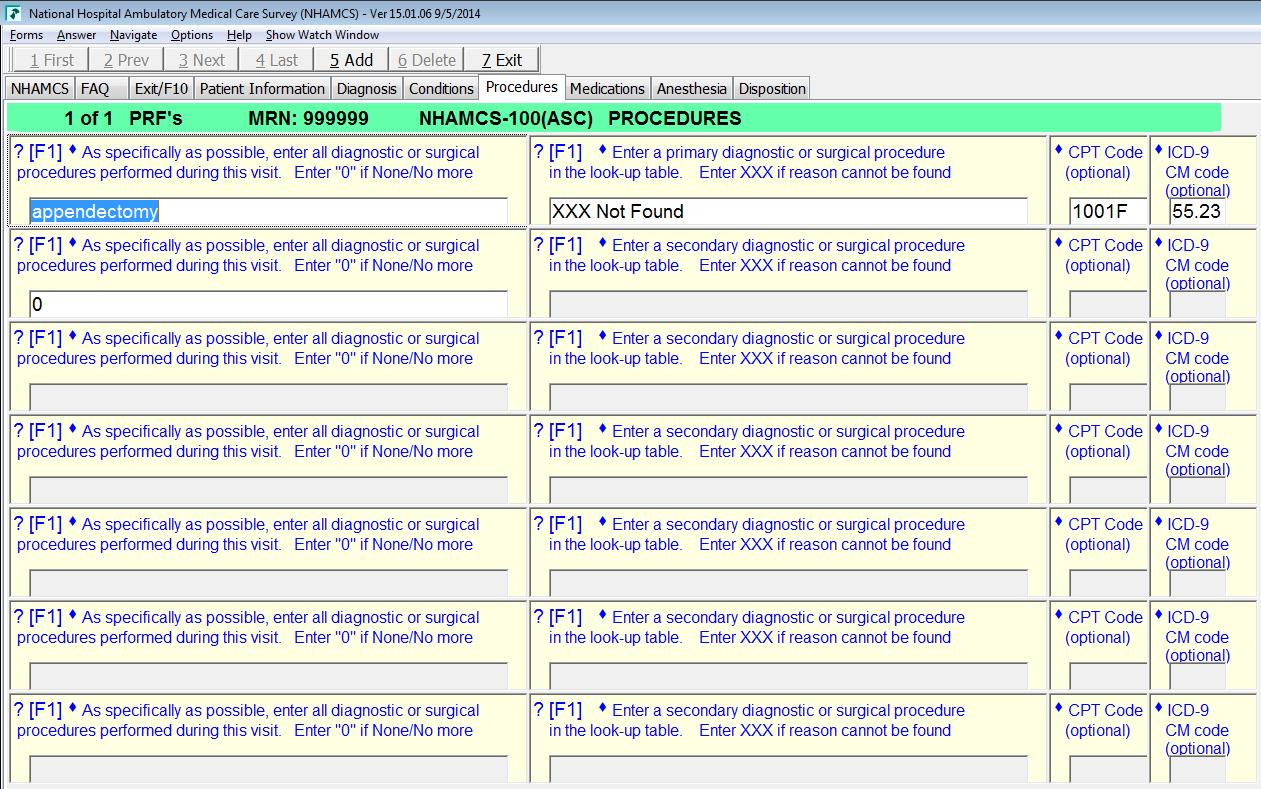 Attachment L: Snapshots of NHAMCS ASC PRF