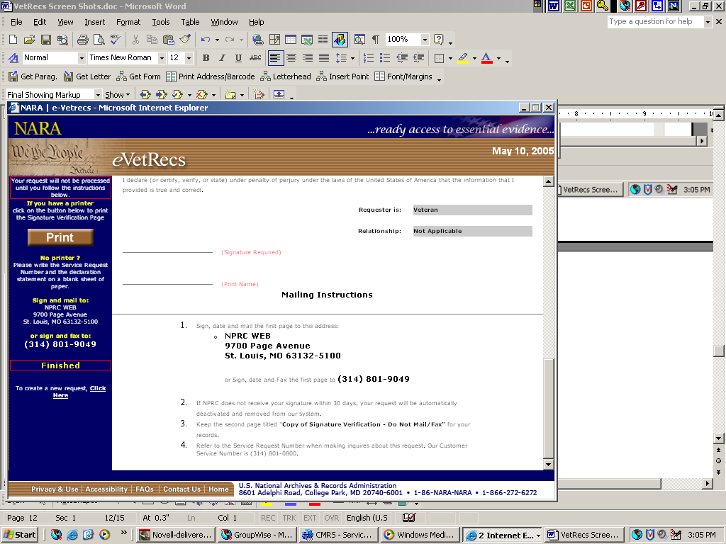 Request Pertaining to Military Records