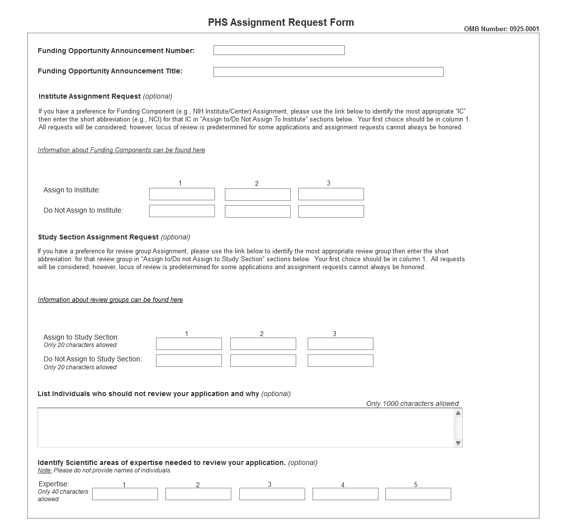 Public reporting burden for this collection of information is estimated to average 30 minutes per response, including the time for reviewing instructions, searching existing data sources, gathering and maintaining the data needed, and completing and reviewing the collection of information. An agency may not conduct or sponsor, and a person is not required to respond to, a collection of information unless it displays a currently valid OMB control number. Send comments regarding this burden estimate or any other aspect of this collection of information, including suggestions for reducing this burden, to: NIH, Project Clearance Branch, 6705 Rockledge Drive, MSC 7974, Bethesda, MD 20892-7974, ATTN: PRA (0925-0001). Do not return the completed form to this address.