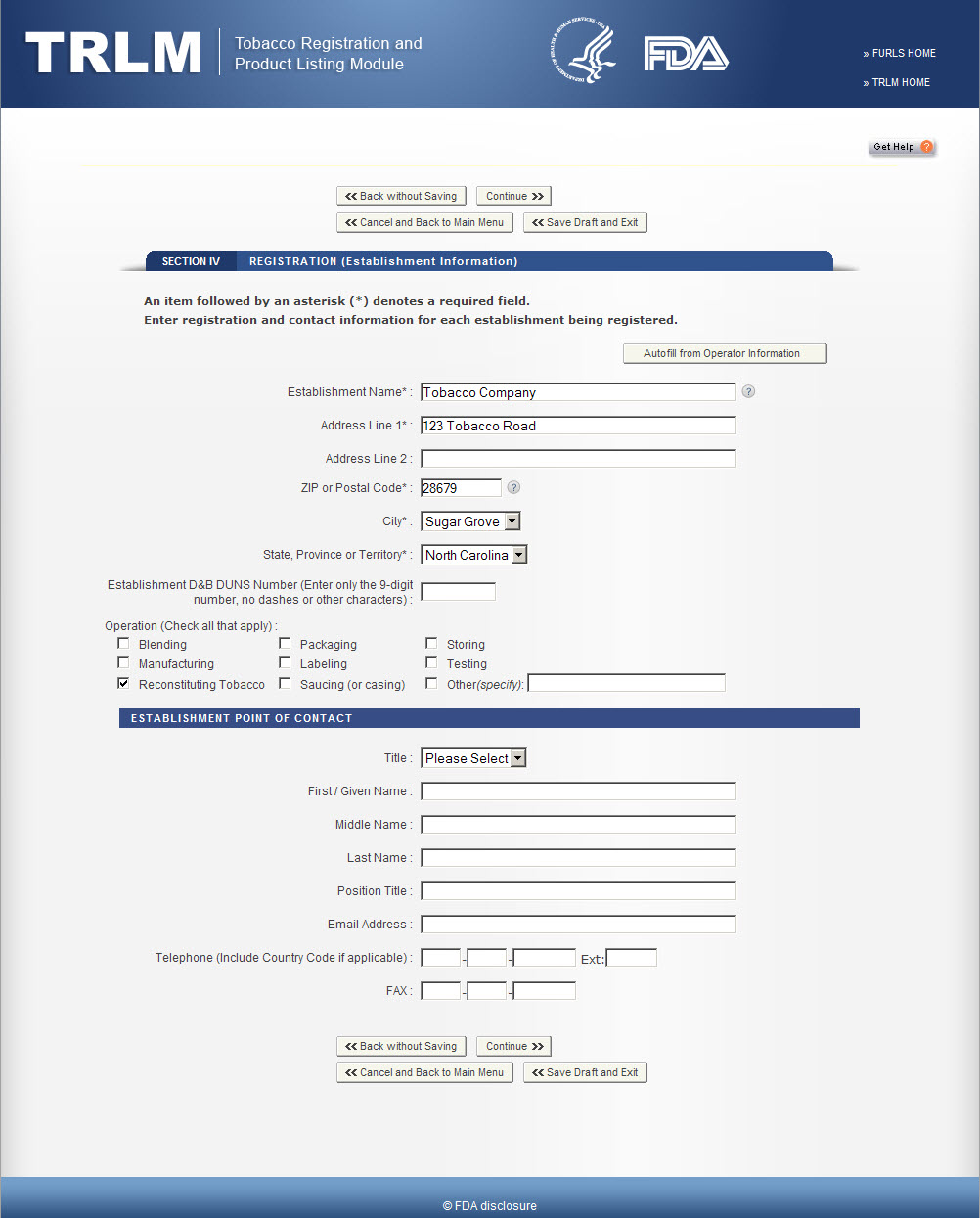 Tobacco Product Establishment Renewal Registration and Listing