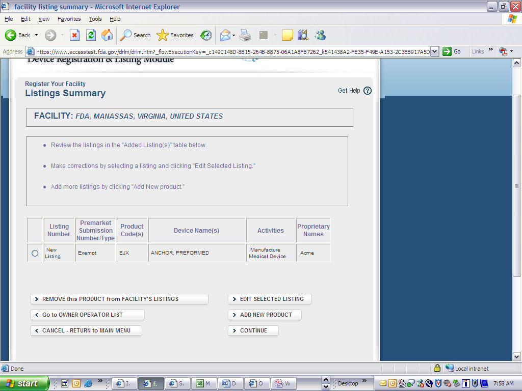 Electronic Submission of Medical Device Registration and Listing