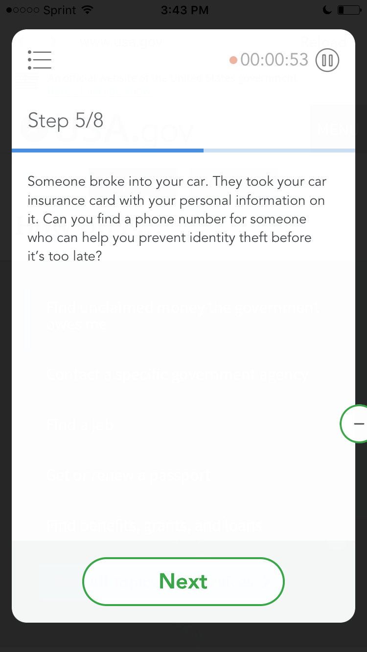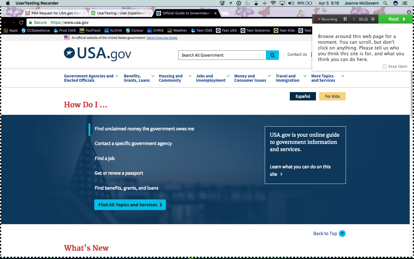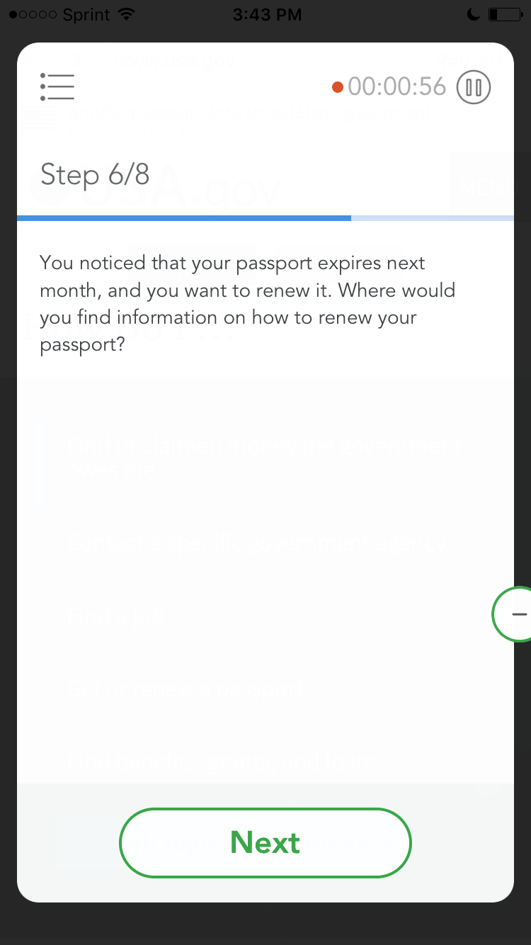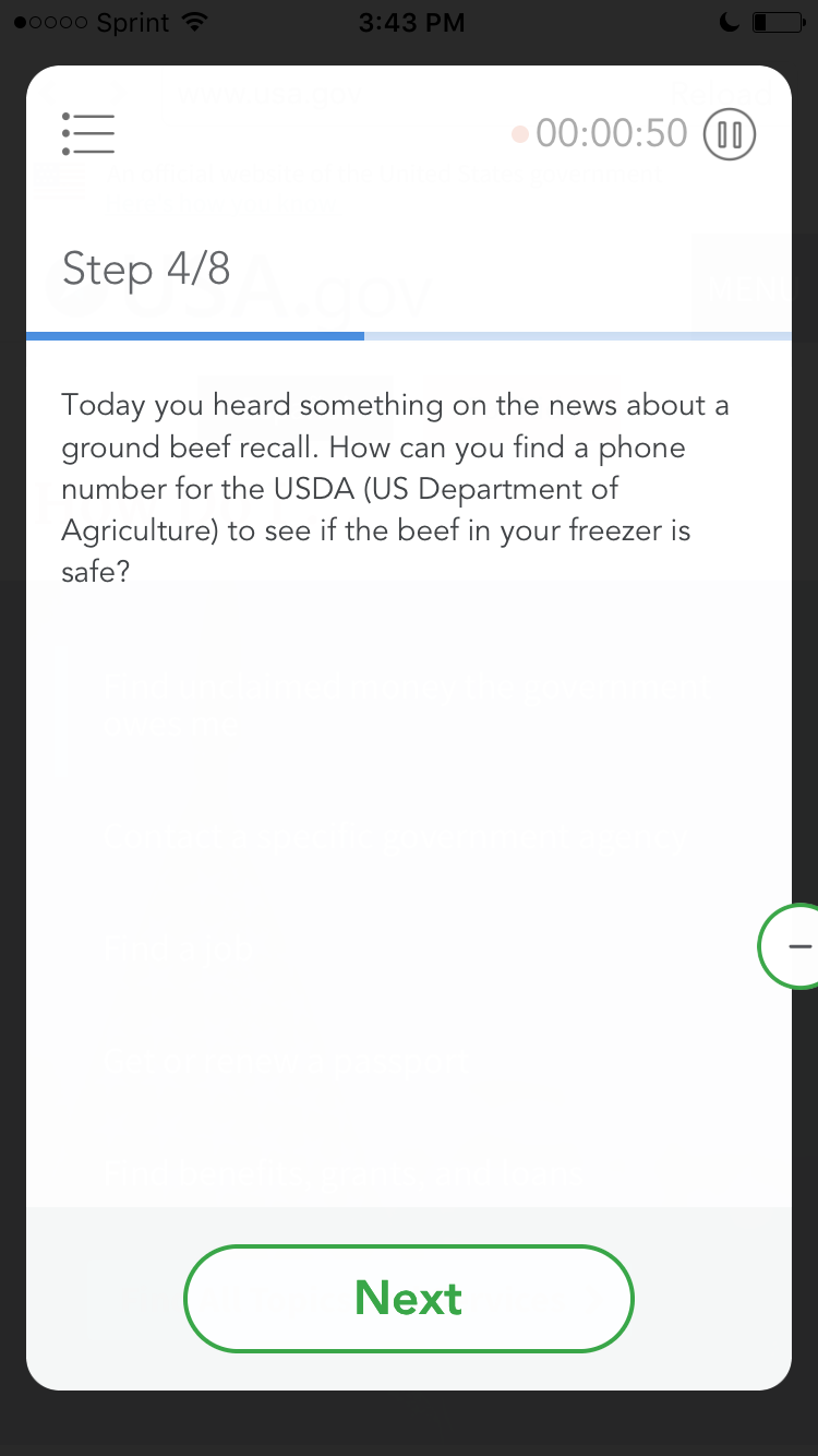 8. Scroll down, near the bottom of the page. You’ll see a link labeled “About USA.gov”. Don’t click it. Please tell us what you think you would see if you did click it.