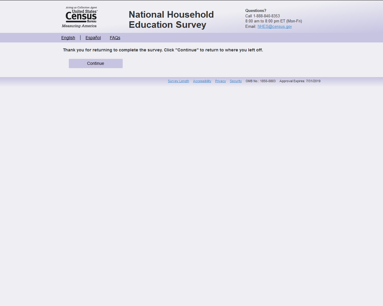 So that we can ask questions about specific people, we will ask you for the first name of each person in the household. What is your first name? You may provide a nickname or initials if you prefer. |