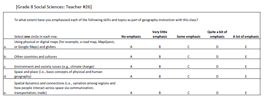 The item wording was revised to clarify instructions for what social studies class teachers should think about when providing a response. |