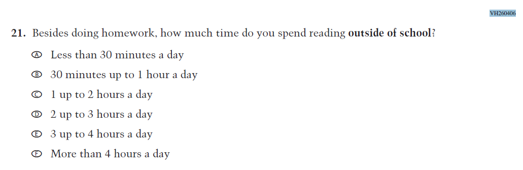 The item stem wording was revised to "hours of homework a day" to match the response options. |