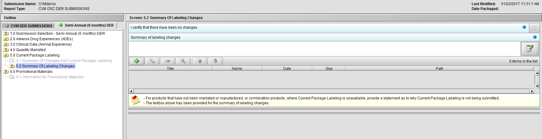 Figure 2.5(c): Selection of ‘No’ to question ‘Do you have Current Package Labeling to submit?’ enables Node 5.2