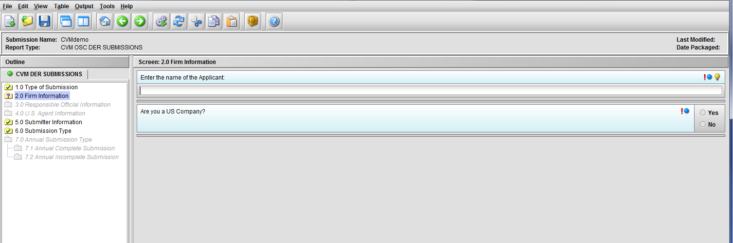 Figure 1.5(a): Submitter Information. Selection of ‘Yes’ to question ‘Is the Submitter the same person as the Responsible Official or US Agent?’ allow user to continue