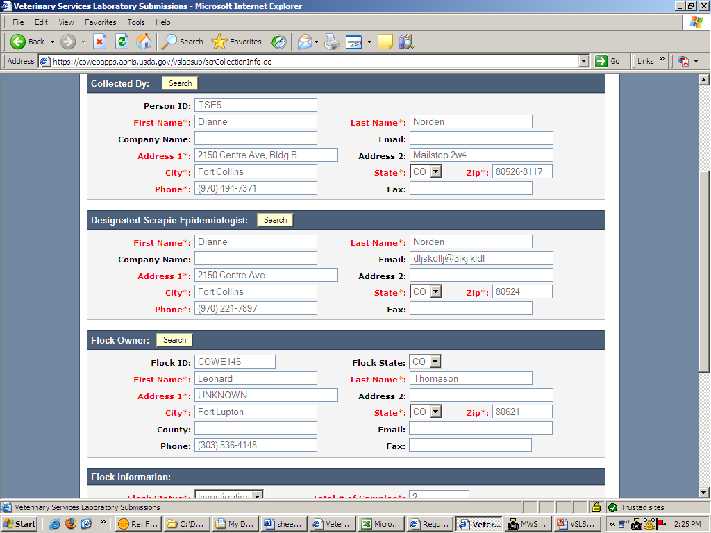 1. VSLS On-farm Surveillance—Information obtained from VS Forms 10-4, 5-29 and 5-29A and entered into this module mirrors that of VSLS Genotyping (see previous screenshot)