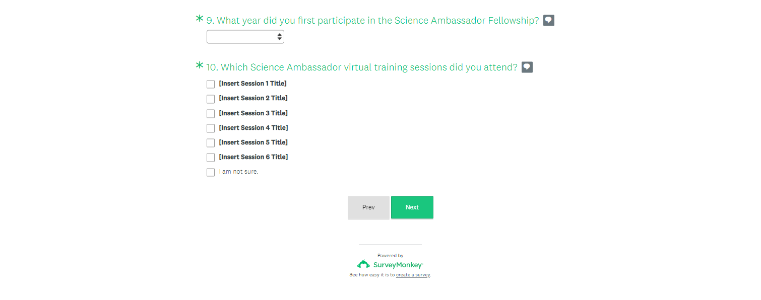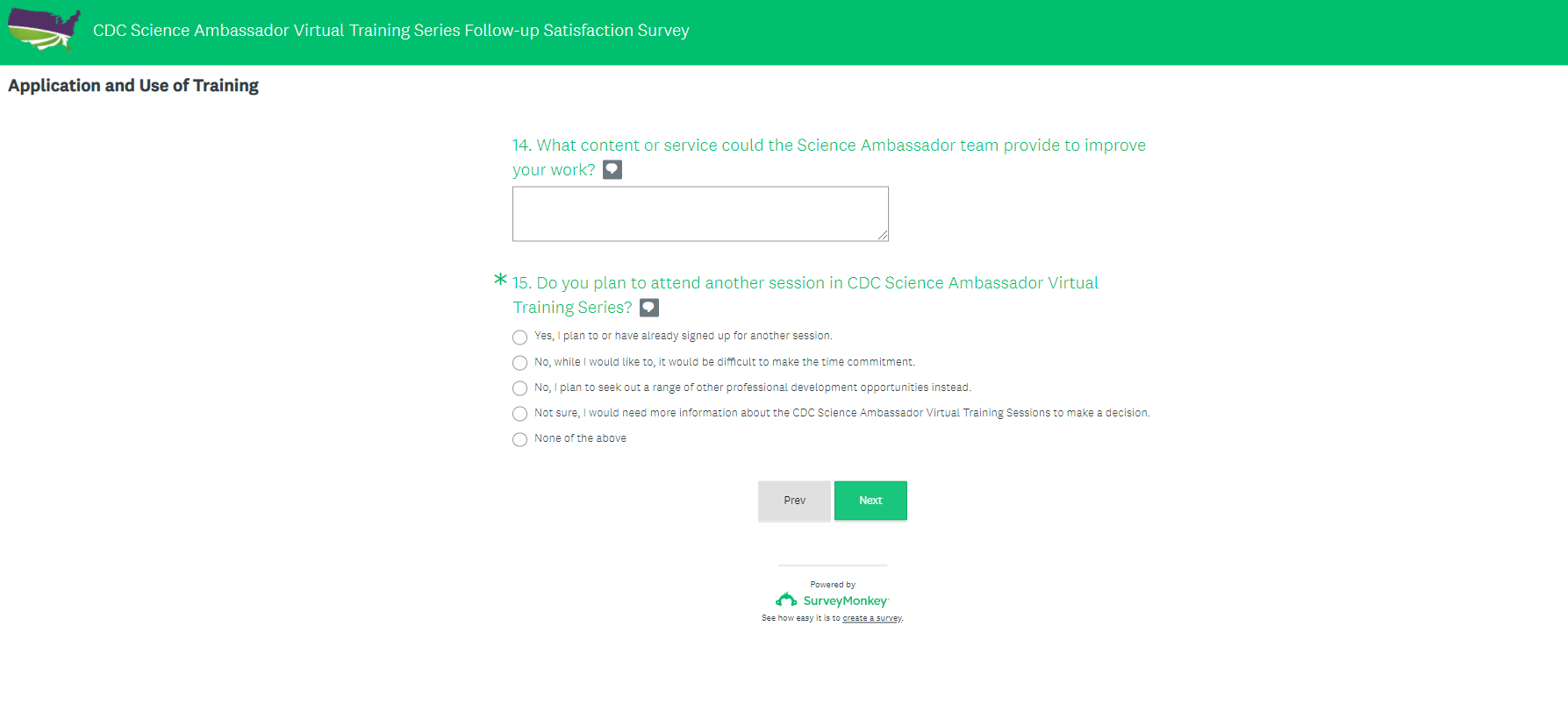 Attachment 6. CDC Science Ambassador Virtual Training Series Follow-up Satisfaction Survey Screenshots