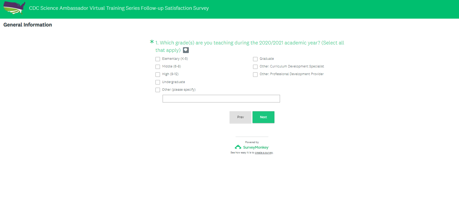 CDC Science Ambassador Virtual Training Series Survey