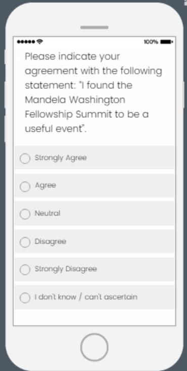 Note: The screenshots below show the mobile view of the Academic and Leadership Institute survey. Surveys can be taken either via mobile device or on a desktop. To view the desktop version of the survey, please visit the link above.