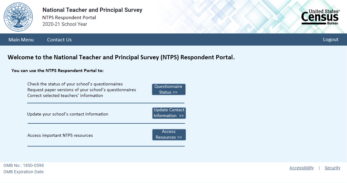 The NTPS Respondent Portal is a web-based interface, the purpose of which is to allow schools to: