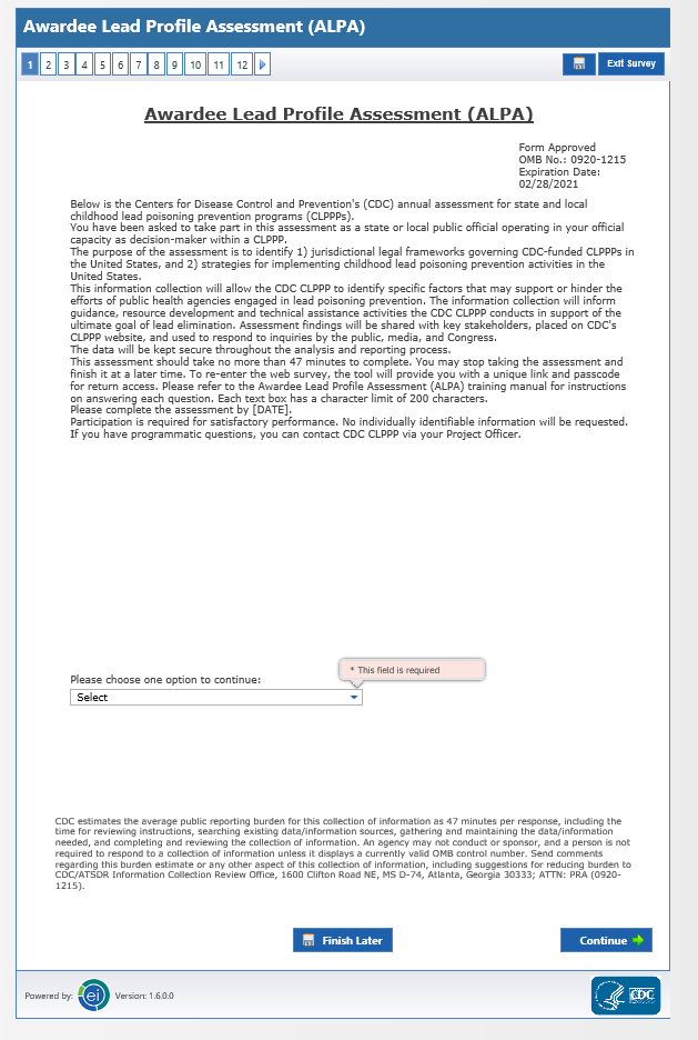 0920-1215 Awardee Lead Profile Assessment (ALPH) Web Survey