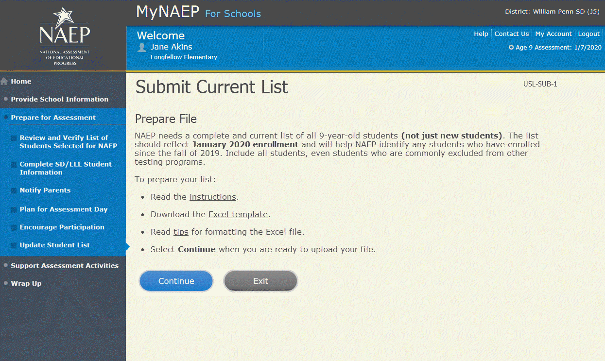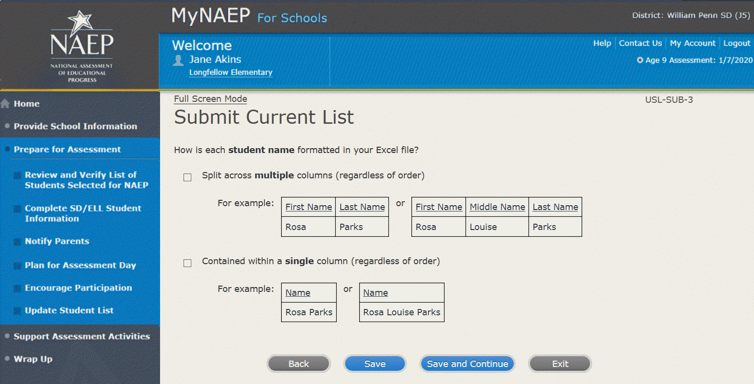 NAEP needs a complete and current list of all students in the selected age group to be assessed (not just new students).