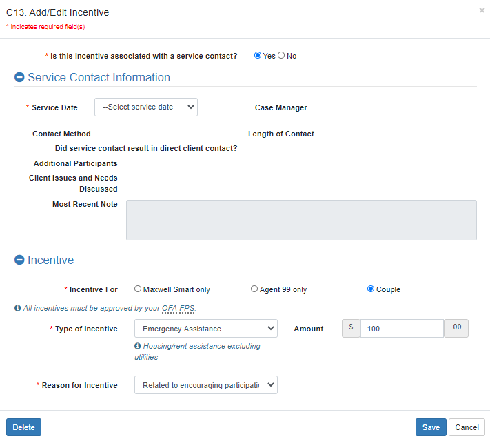 C7/C12/C13. Add/Edit Client Service Contacts, Referrals, and Incentives