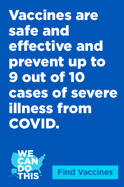 Vaccines can give you protection from COVID without the risk of serious illness, hospitalization, or death that can come with COVID. |