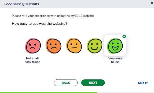 Por favor califique su experiencia con el uso de la página de Internet MyECLS.