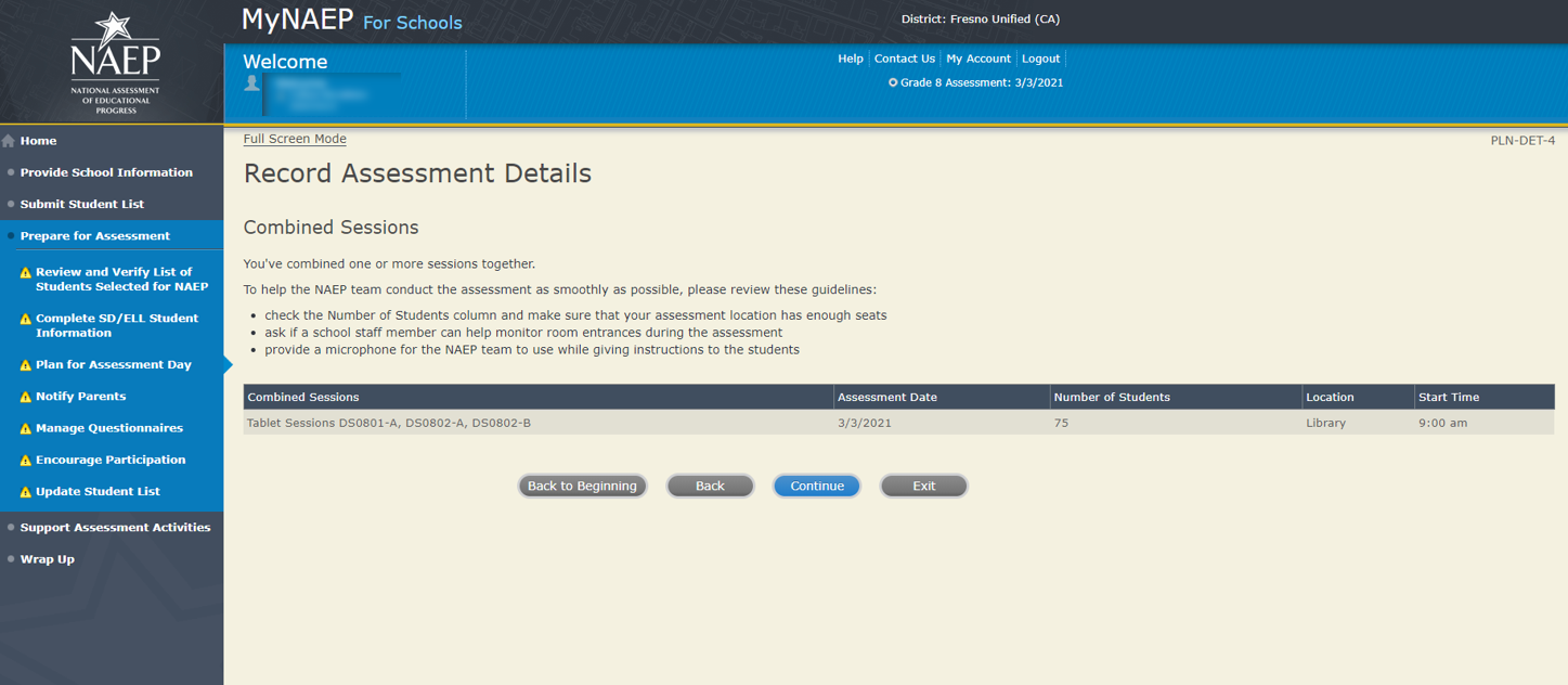 Review and Verify List of Students Selected for NAEP 102