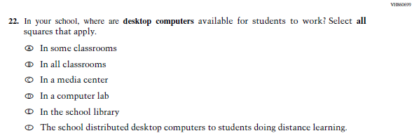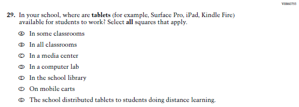 The stem of this item was revised from "when your school was closed last school year" to "for last school year" to remove references to school closures. |