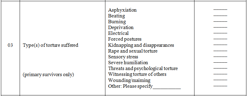 03. TYPE(S) OF TORTURE SUFFERED 3