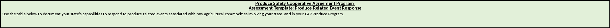If YES, what state agencies/division/personnel roles are involved? | If YES, does the capability exist within your CAP produce program? | If YES, are policies or procedures are in place? | If YES, list any FDA funded programs that are used to implement this capability (e.g. RRT, LFFM, etc.) | (Optional) Provide any additional information as needed | OPEI | Entity Name | Path | |