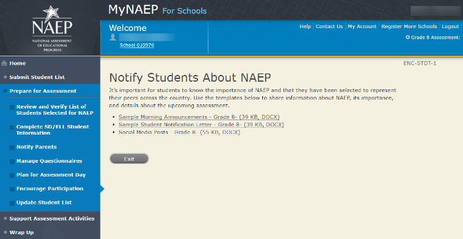 MyNAEP Registration ID: