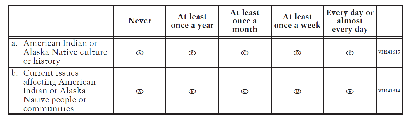 Alaska Native education, while others are intended for broader use. Select one circle in