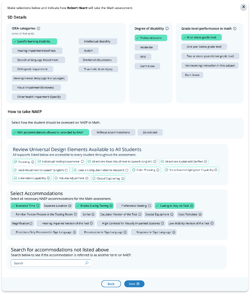 National Center for Education Statistics (NCES) conducts the National Assessment of Educational Progress to evaluate federally supported education programs. All of the information you provide may be used only for statistical purposes and may not be disclosed, or used, in identifiable form for any other purpose except as required by law (20 U.S.C. §9573 and 6 U.S.C. §151). By law, every NCES employee as well as every NCES agent, such as contractors and NAEP coordinators, has taken an oath and is subject to a jail term of up to 5 years, a fine of $250,000, or both if he or she willfully discloses ANY identifiable information about you. Electronic submission of your information will be monitored for viruses, malware, and other threats by Federal employees and contractors in accordance with the Cybersecurity Enhancement Act of 2015.