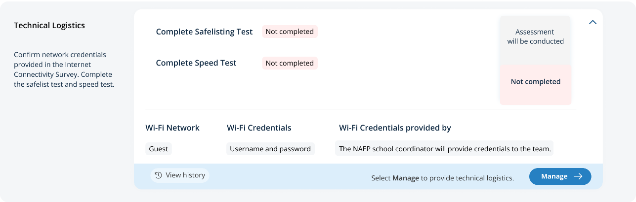 In step 3, schools can view the status of their submission, the contact information for the NAEP Supervisor that will be visiting the school, and the scheduled date and time for the meeting.