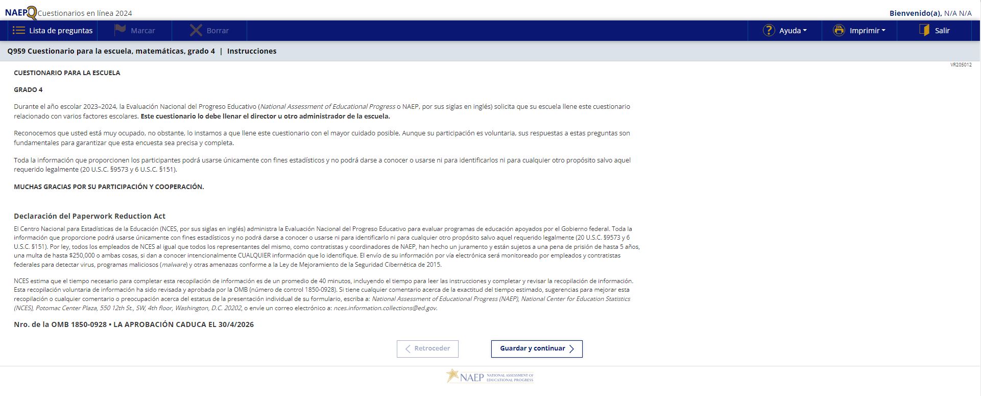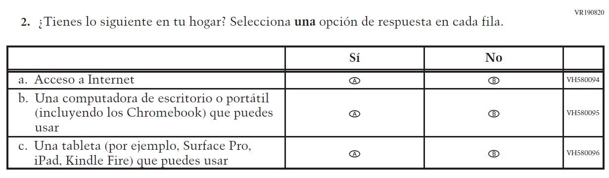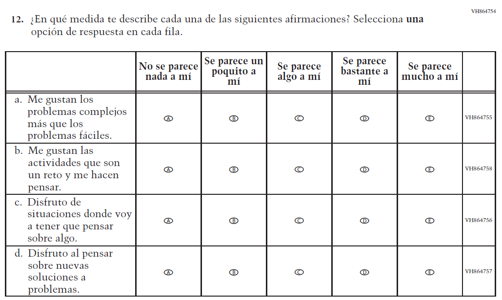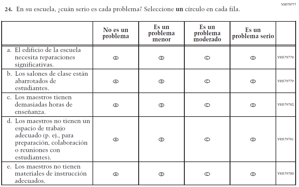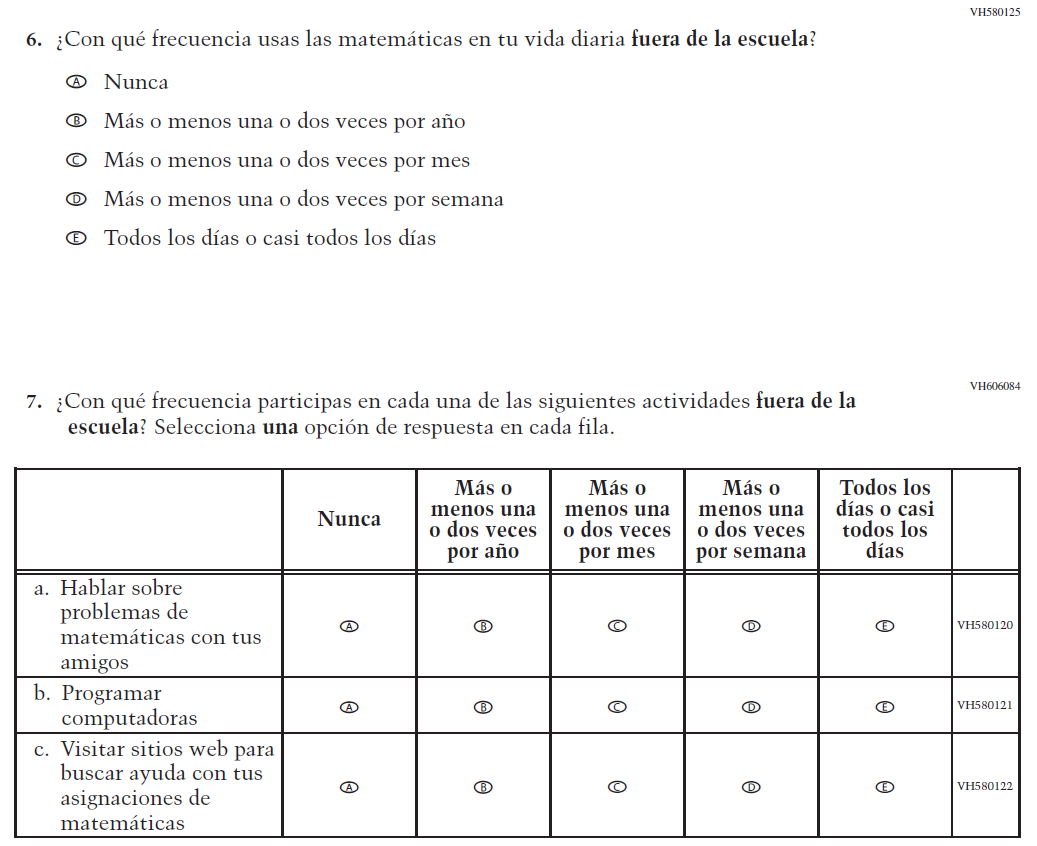 Appendix J-S provides Spanish student, teacher, and school survey questionnaires that will be administered in 2024. Grades 4 and 8 Core, Math, and Reading questionnaires were previously approved in 2022 (OMB# 1850-0928 v.28), and any changes to the items from the 2022 administration are reflected in summary tables. Additionally, grade 8 Science was previously approved in 2019 (OMB# 1850-0928 v.15), and any changes to the items from the 2019 administration are reflected in summary tables. Please note, some of the numbers of the items may be missing or out of order in these printed versions. This will be corrected in the platform view.