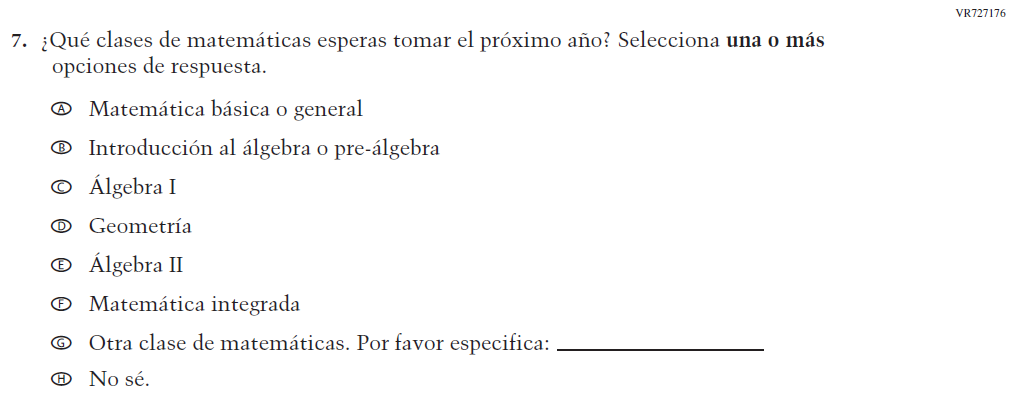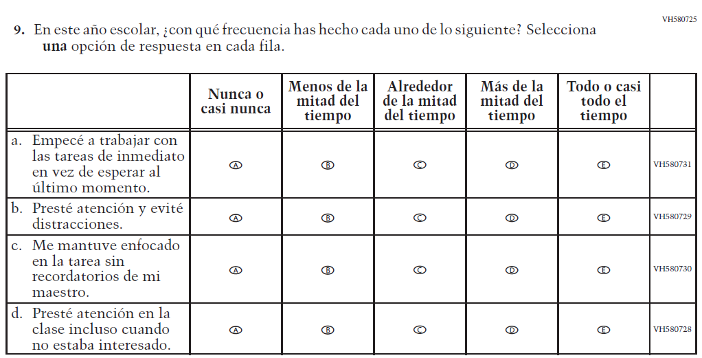 Appendix J-1-s: Spanish Translations of Student Questionnaires 5