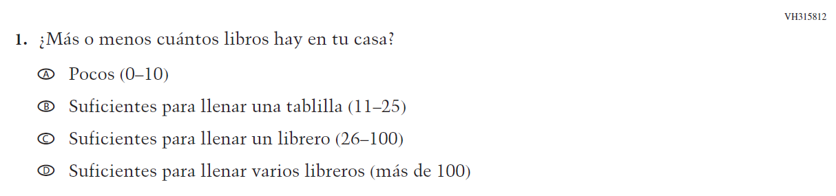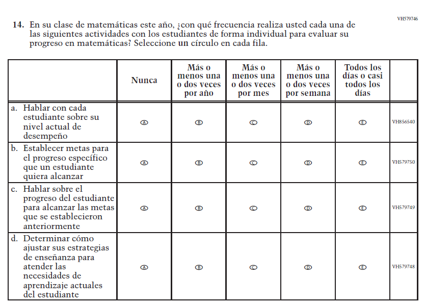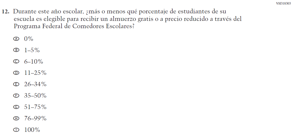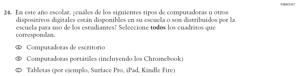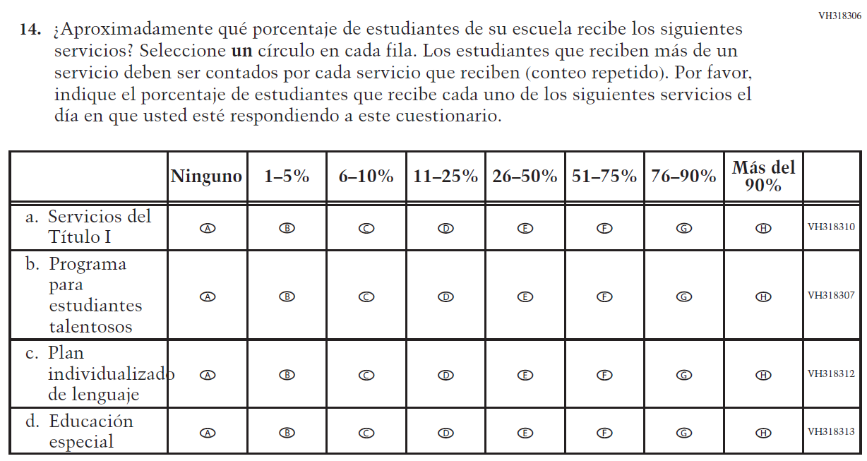 Appendix J-S provides Spanish student, teacher, and school survey questionnaires that will be administered in 2024. Grades 4 and 8 Core, Math, and Reading questionnaires were previously approved in 2022 (OMB# 1850-0928 v.28), and any changes to the items from the 2022 administration are reflected in summary tables. Additionally, grade 8 Science was previously approved in 2019 (OMB# 1850-0928 v.15), and any changes to the items from the 2019 administration are reflected in summary tables. Please note, some of the numbers of the items may be missing or out of order in these printed versions. This will be corrected in the platform view.
