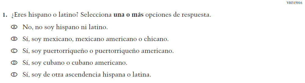 Revised options b and d to align with categories used by the 2020 Census Bureau, |