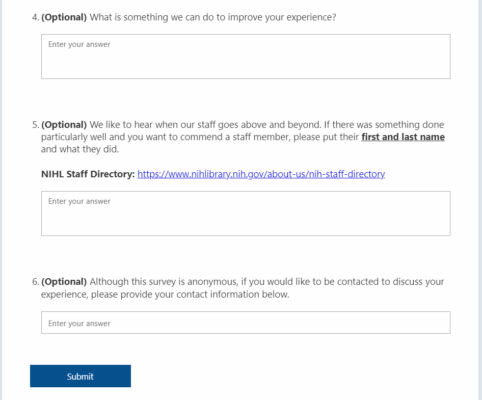 NIH Library Survey for General Services screenshots 9.27.2022