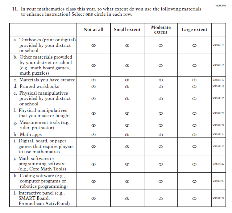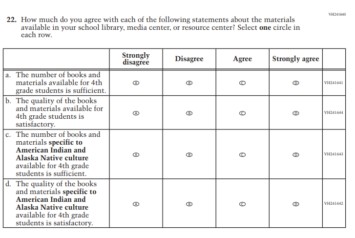 SubItems “g.” through “k.” in the 2022 version of the Item, which reference Social Studies, have been replaced with SubItems that reference Science. SubItem “l.” also references Science. Social Studies is not in the 2024 NAEP Assessment. Science is being administered at Grade 8. |