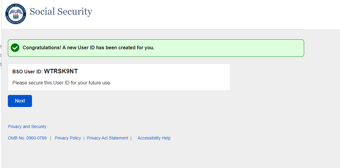 The user will be provided a confirmation message with their new BSO User ID. The user will be sent to the existing BSO Main Menu page to Request New Services (or roles) to perform tasks on behalf of a particular organization