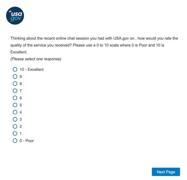 Voluntary Customer Satisfaction Survey for Customers of the USA.gov Web Chat Government Information Service Who Speak to an Information Specialist