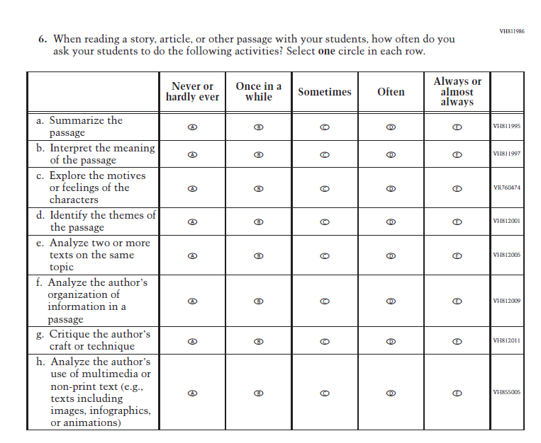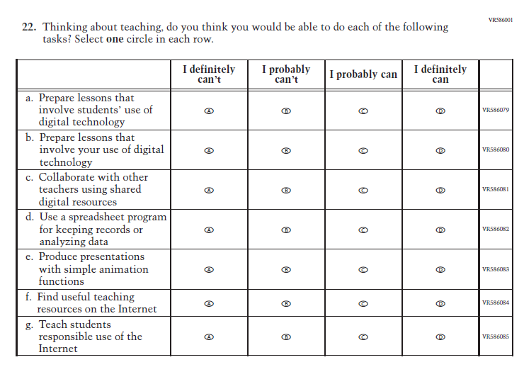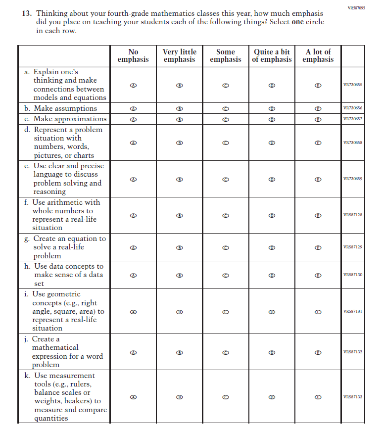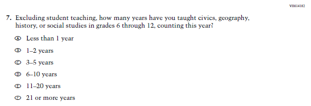 SubItems “g.” through “k.” in the 2022 version of the Item, which reference Social Studies, have been replaced with SubItems that reference Science. SubItem “l.” also references Science. Social Studies is not in the 2024 NAEP Assessment. Science is being administered at Grade 8. |