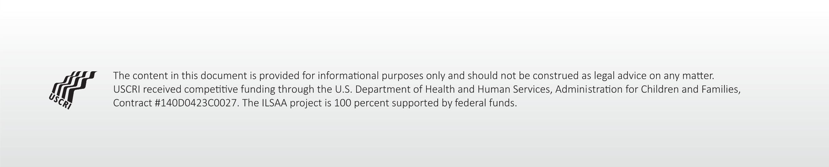 THE PAPERWORK REDUCTION ACT (PRA) OF 1995 (Pub. L. 104–13) The purpose of this information collection is to understand the qualifications of Legal Service Providers handling cases for the Immigration Legal Services for Afghan Arrivals project, an Office of Refugee Resettlement initiative. Public reporting burden for this collection of information is estimated to average sixty-five minutes per respondent, including the time for reviewing instructions, gathering and maintaining the data needed, and reviewing the collection of information. This is a voluntary collection of information. A federal agency may not conduct or sponsor, and no individual or entity is required to respond to, nor shall an individual or entity be subject to a penalty or failure to comply with a collection of information subject to the requirements of the Paperwork Reduction Act of 1995, unless that collection of information displays a currently valid OMB control number. If you have any comments on this collection of information, please contact Malia Kim, Capacity Building Director, ICF, by email at Malia.Kim@icf.com. |