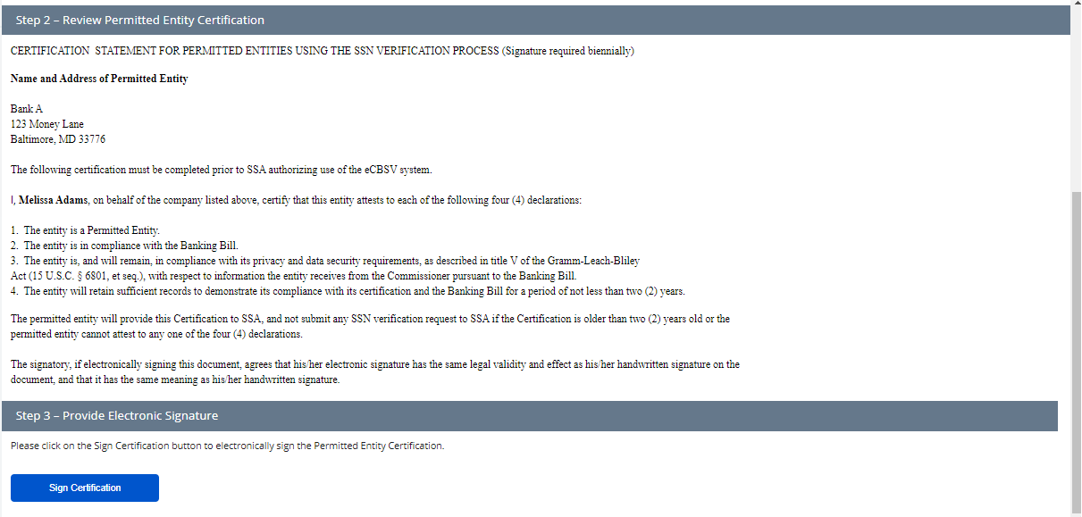 Electronic Consent Based Social Security Number Verification (eCBSV)