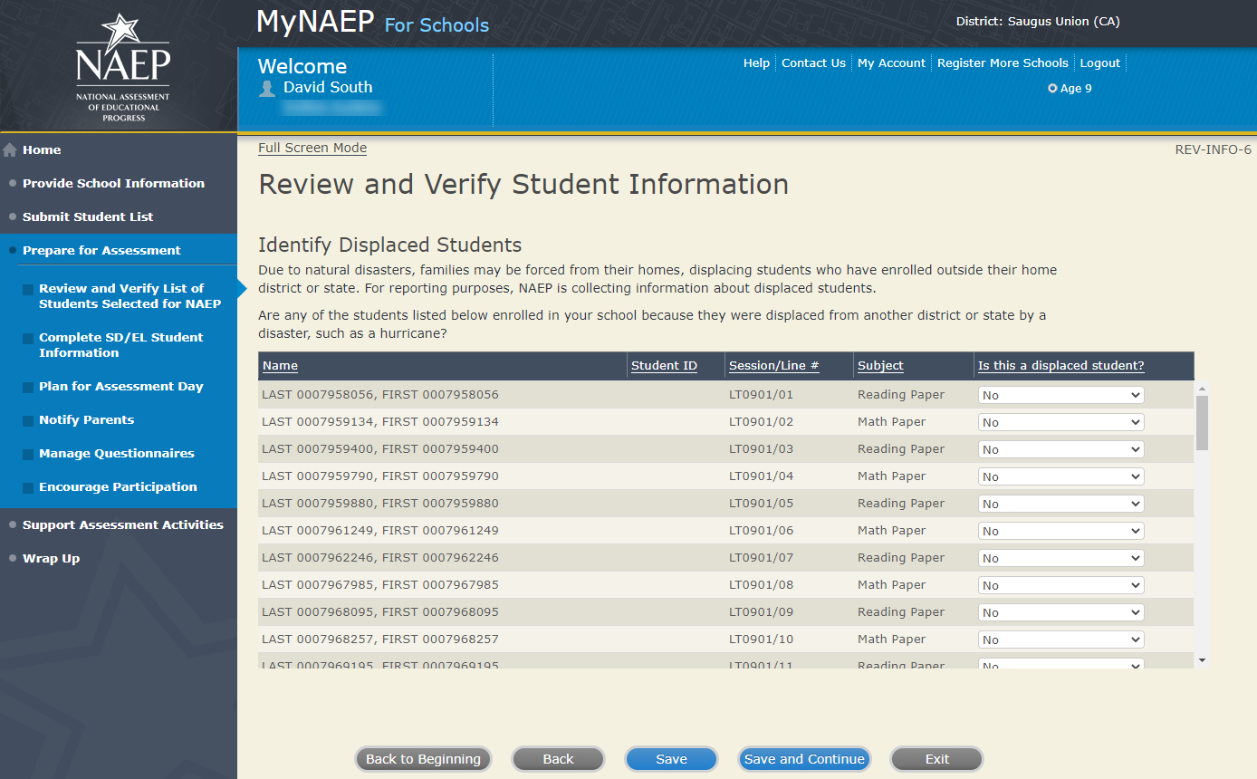 Review and Verify List of Students Selected for NAEP 13