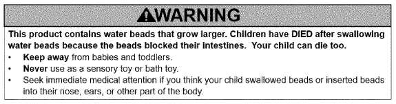 Figure 1: Warning for Water Bead Toys and Packaging of Toys Containing Water Beads