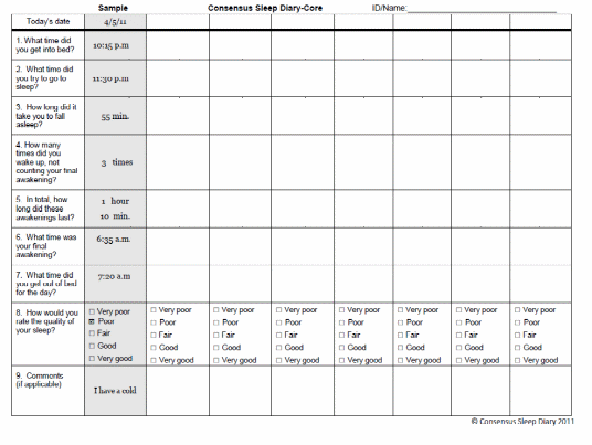 Attachment E: Sleep Diary