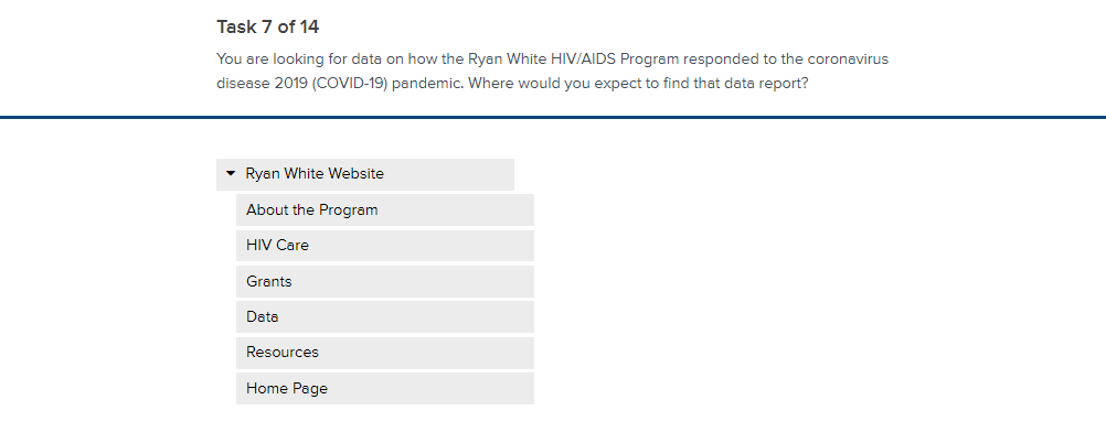 Ryan White HIV/AIDS Program (RWHAP) Tree Testing Script (Test Instrument)
