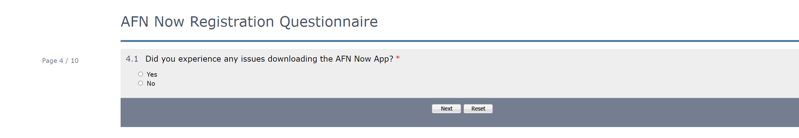 collect end-user feedback on the AFN|now application registration