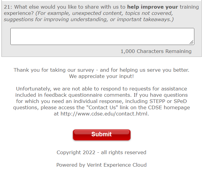 CDSE Insider Threat Awareness Course Student Evaluation Survey